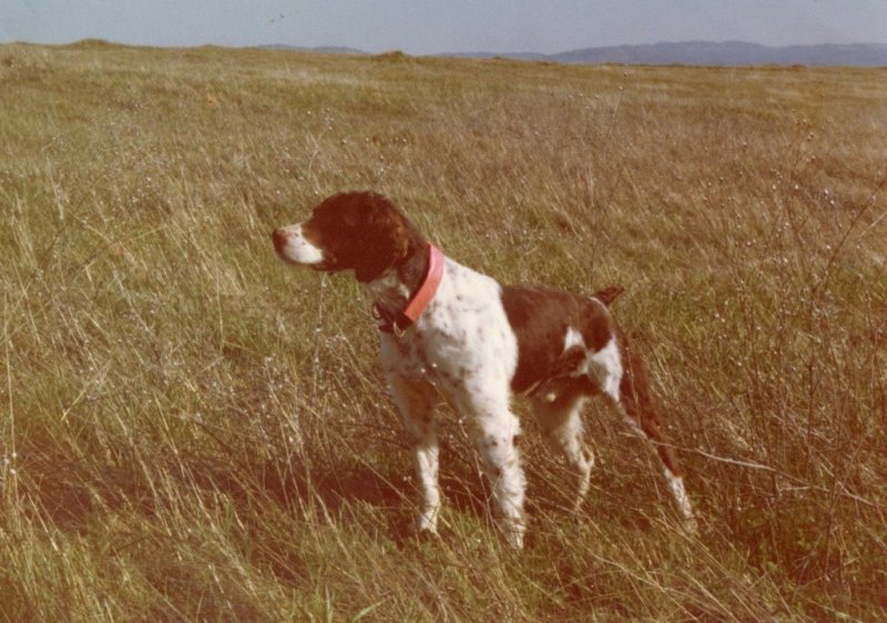 A small liver blanketed male with lots of point. He is reputed to have given the west coast a rebirth in pointing Brittanys. He had 90 field placements and 35 were firsts. He held the record for all age first, 22 firsts , for many years. He produced 58 winners and 5 were hour winners.